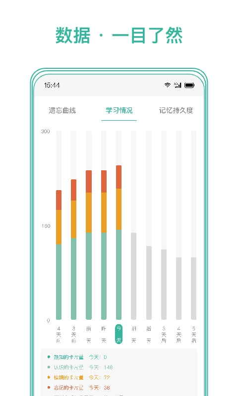 使用一段时间后,你可以查看自己的遗忘曲线和记忆持久度,从而更清晰地掌握自身的学习状况。