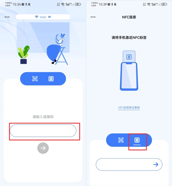 除了扫描二维码,我们还能通过输入链接码或者利用NFC进行连接。