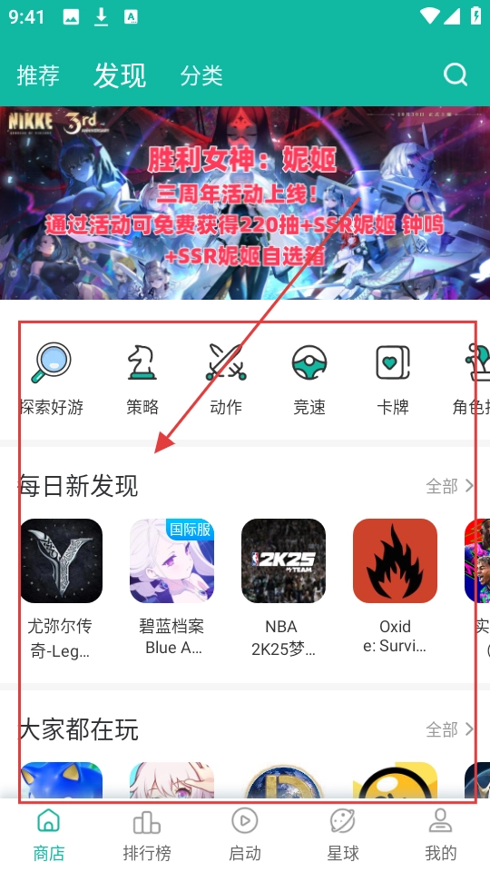 你可以在每日新发现板块里找到《尤弥尔传奇》,然后点击进入游戏详情页呀。