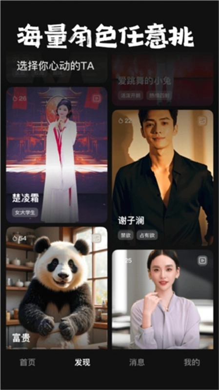 登录后,你可以从各式各样的AI角色里挑选自己钟爱的,像温柔姐姐、可爱甜妹、帅气奶狗、萌宠伙伴这类不同风格的角色都有,能充分满足你的个人喜好。