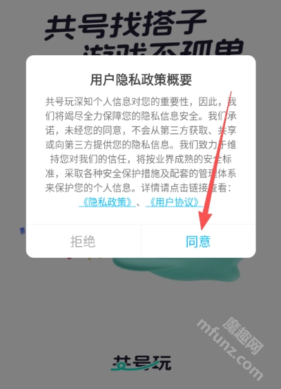 打开共号玩点击同意