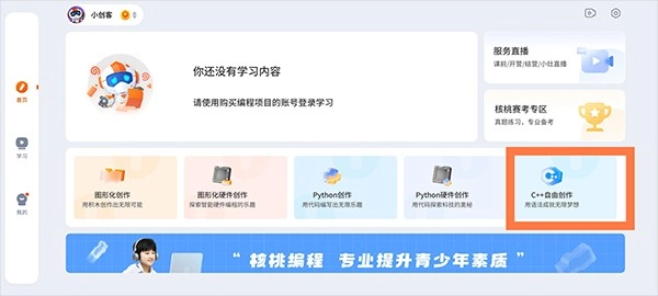 这里能看到包含【服务直播、核桃赛考、C++创作等内容】,我们以C++为例点击查看