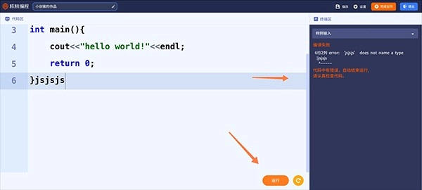 之后就能进入代码程序自行编辑,编辑好后点击运行。要是编辑有误,系统会提示编译失败,并指出具体出错的行数,自己对应修改即可。