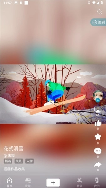打开软件后,能够浏览各类不同的作品,当遇到自己喜欢的内容时,还可以进行点赞和分享操作。