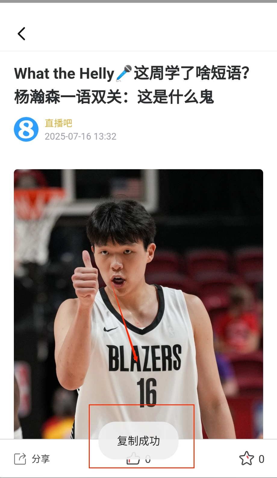 滑动到文章底部,能看到一排功能按钮。点击蓝色的“分享”图标,就会弹出分享菜单,里面有复制链接、生成海报和直接分享这些选项。