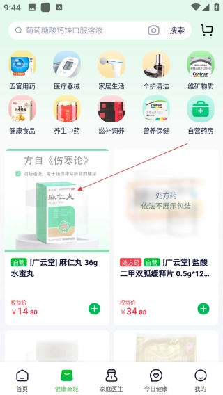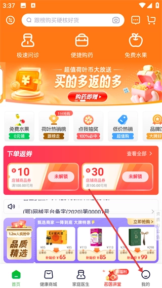 打开荷叶健康,点击【健康商城】。