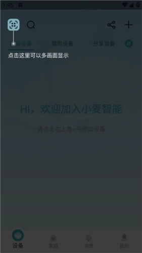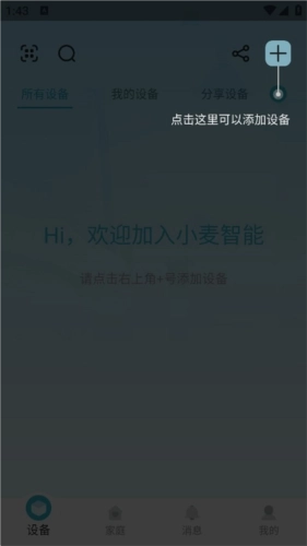 如图所示,当用户成功注册并登录小麦智能后,即可在此处添加设备。