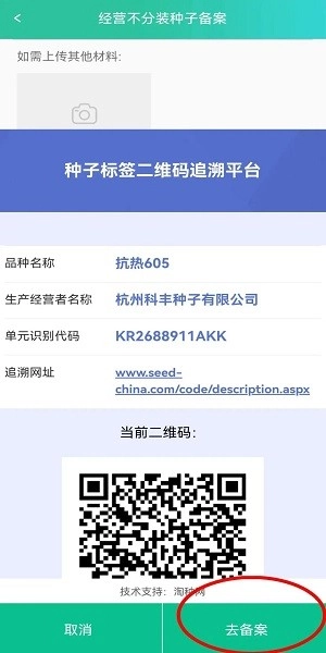 您只需把种子流水号填入平台,就能完成备案,既高效又精准。