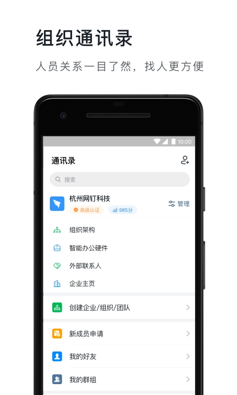 组织关系在线化方面,钉钉具备安全可靠的组织通讯录功能,能让用户迅速定位同事,助力组织架构达成扁平化与可视化效果。