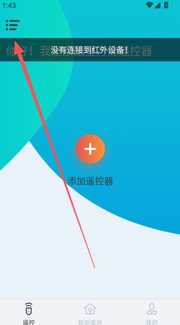打开后,点击页面或者左上角的按钮;进入“遥控页面”选择家电类型,之后再通过“设备类型”选项选择对应的家电品牌。