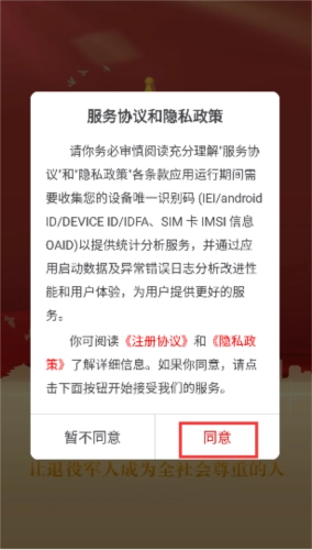 无 (1.因面向对象为退役军人,已调整为18周岁及以上;3.已更新隐私政策并补充主体信息 4.在设置-关于页面添加隐私政策常驻入口)
