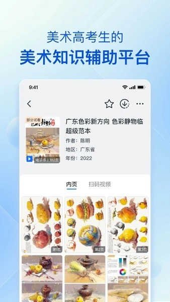 丰富的教育资源:目前美育校园版汇聚了众多热门美术知识教育资源,涵盖电子书教材、出版导师专属视频讲解、海量图库以及优质图文课件等内容。