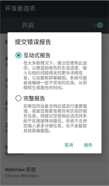 这个选项主要用于系统出现故障的情况,比如我们常说的bug或者死机问题,通过它可以生成报告,方便提交给相关人员来检测和处理问题。
