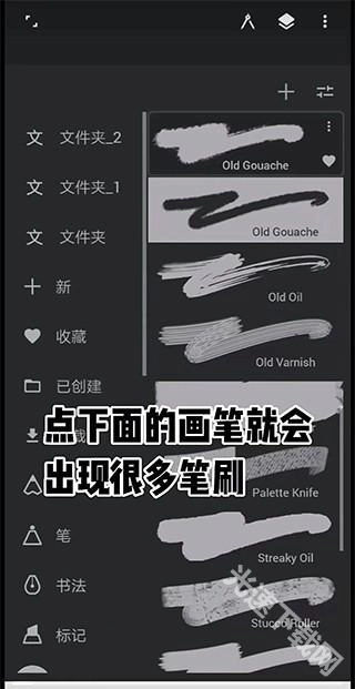 点击正下方工具栏中选择画笔,会出现很多笔刷。