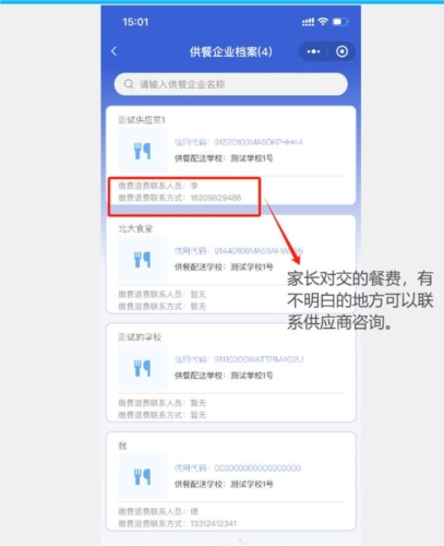 供餐企业档案:学校供餐单位的相关信息都在这里。要是出现多缴费的情况,可直接联系退费对接人员(不过目前小程序采用就餐日历打卡模式,打卡操作由班主任或供餐企业负责,缴费是按照实际就餐情况来的,所以一般不会有退费的问题。如果对缴费金额有疑问,也能联系供应商咨询解答)。
