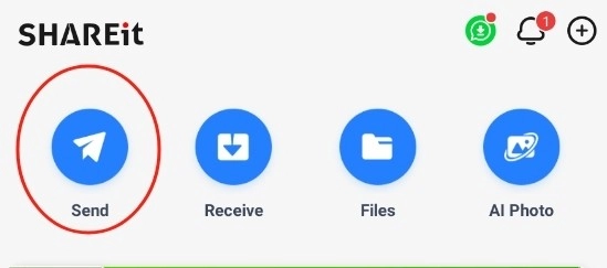 若想通过SHAREit传输文件,你得先打开这个应用,然后点击主页上的【Send】按钮。