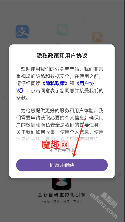 打开分身宝点击同意
