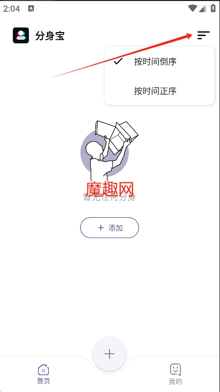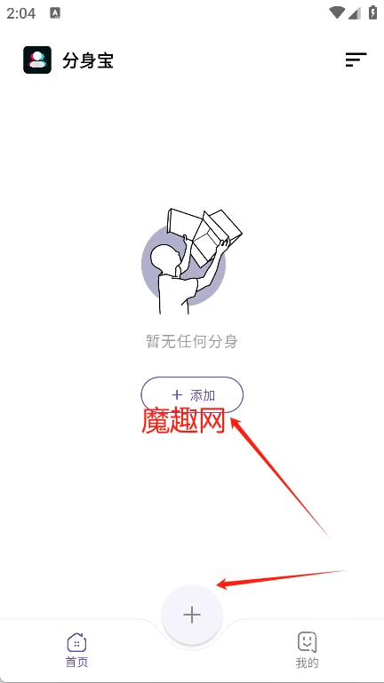 进入首页后,点击页面底部的加号按钮,或者直接点击屏幕中间的加号图标,就能选择想要多开的应用了。