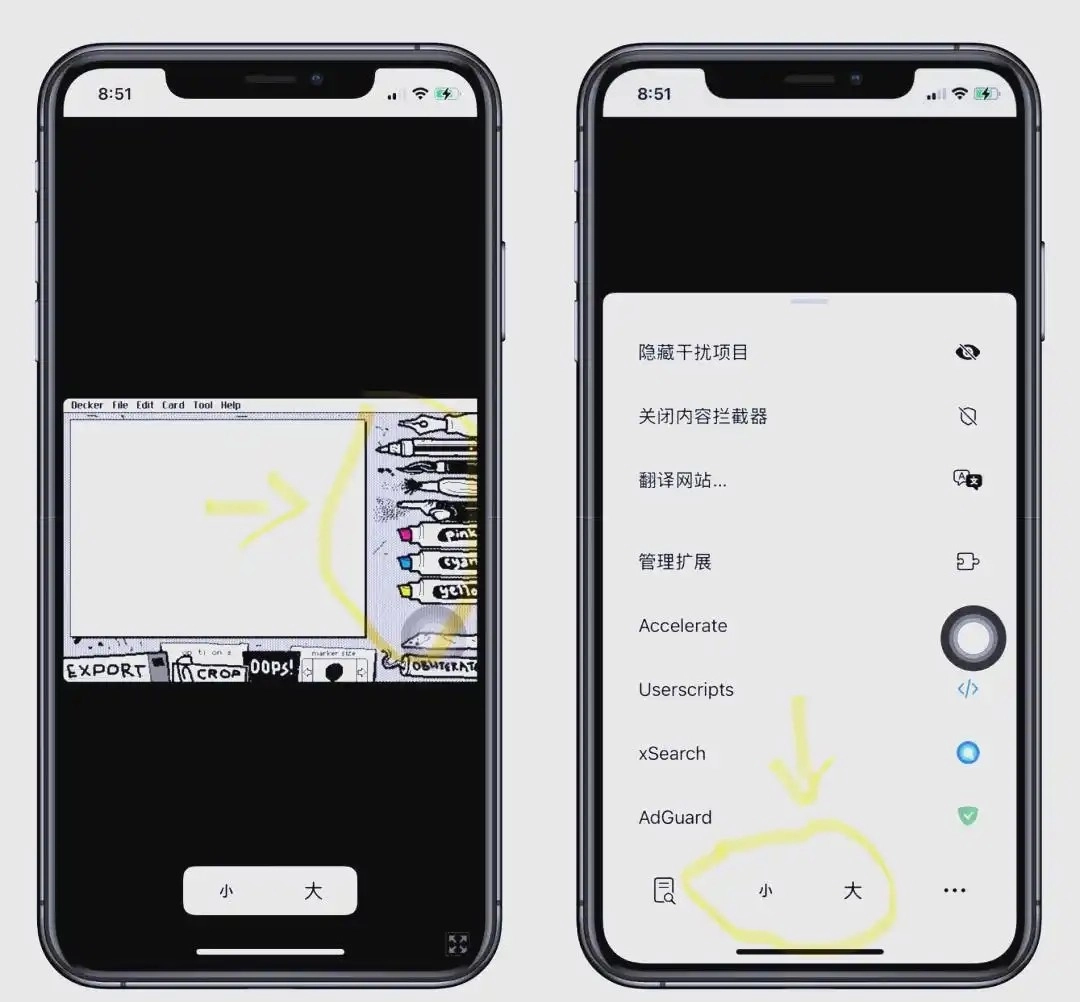 使用Wigglypaint时,需在工具栏里选定画笔,再根据不同的创作需求来调整笔头大小与色调。