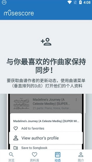 在【动态】版块里,你可以添加喜欢的作曲家,和他们交流互动,共同成长。