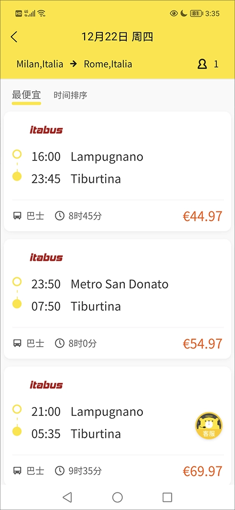 选择需要的票务服务;