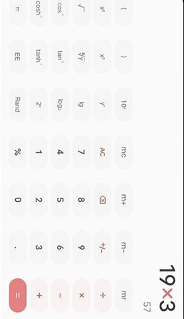 当您把手机横过来放置时,计算器就会自动切换到高级计算模式的界面。
