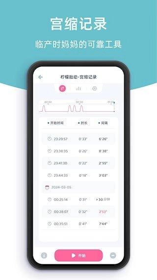 宫缩的频率和持续时间可以方便地录入系统。操作步骤得到了简化,在宫缩出现时能够迅速记录,从而减轻孕晚期孕妇的操作压力。