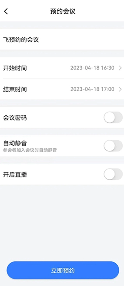 设置好会议的开始和结束时间,点击立即预约。
