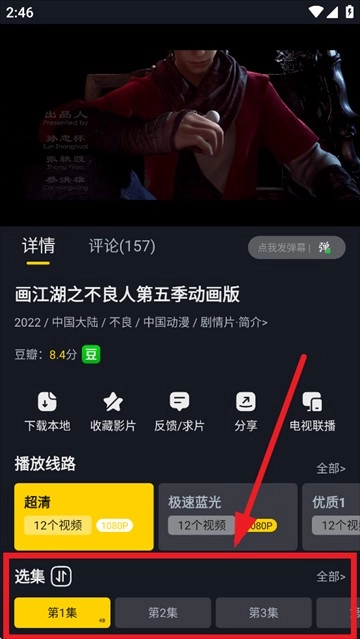 安装并打开毒舌电影后,可直接搜索想看的影视作品进入播放界面,然后点击播放线路。