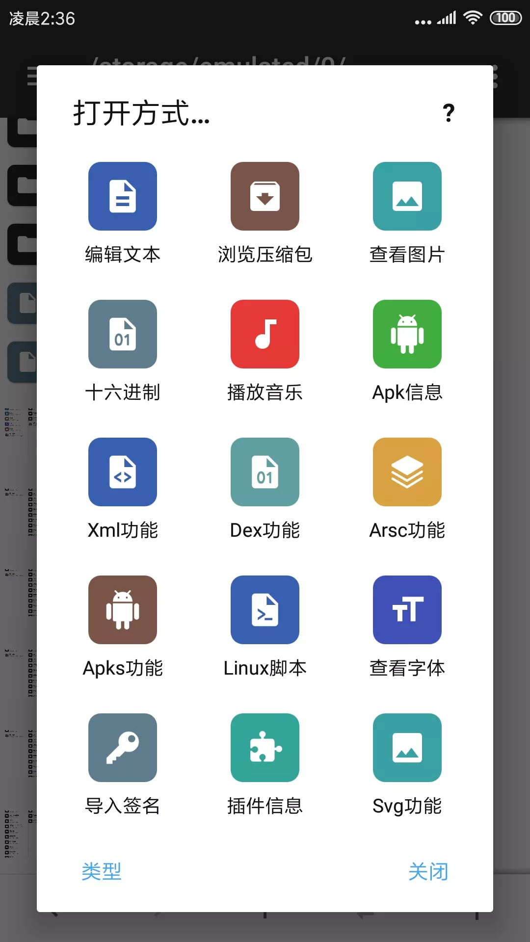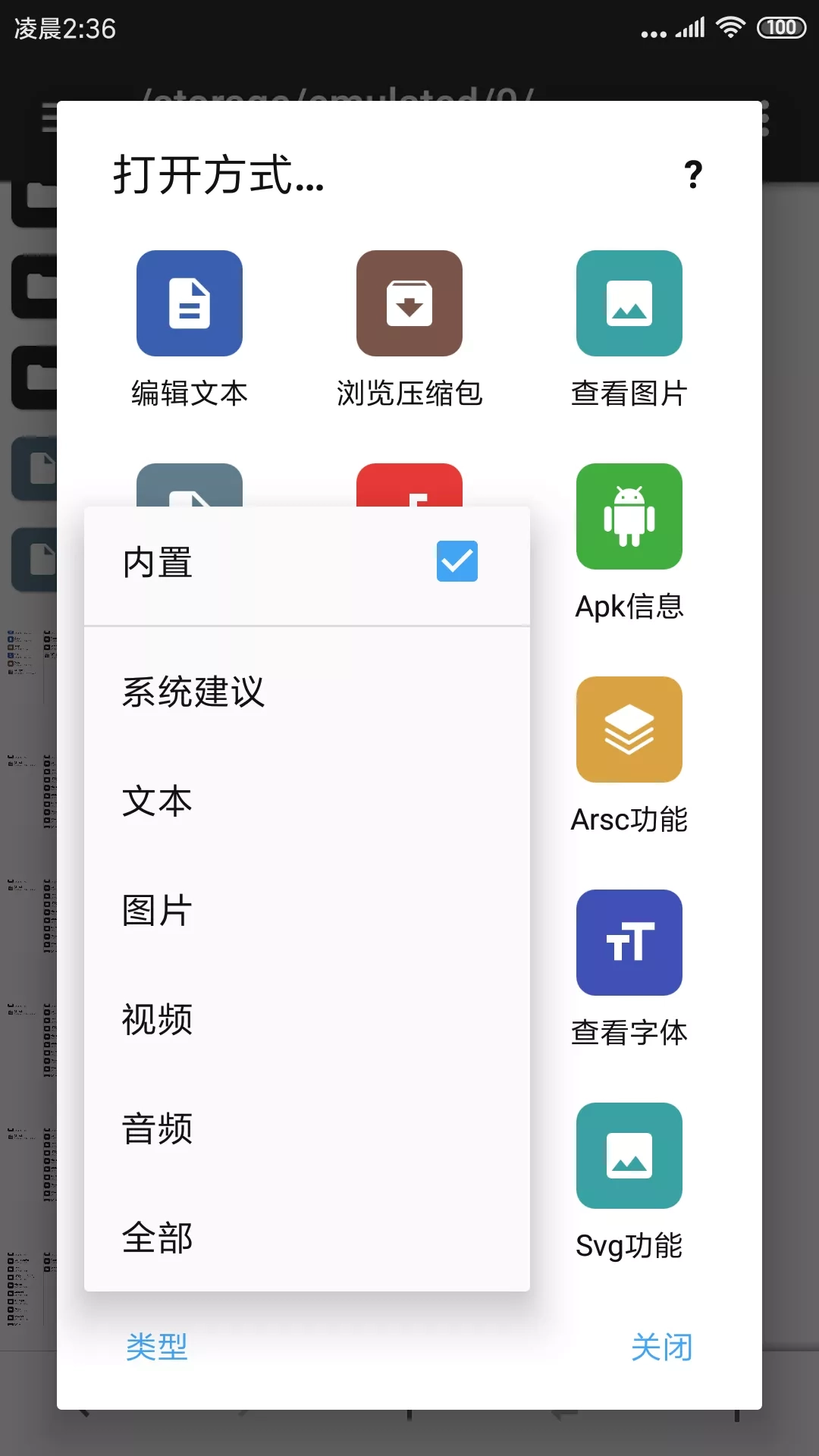如果你想调用系统外部的程序来打开文件,可以点击「类型」选项进行切换。