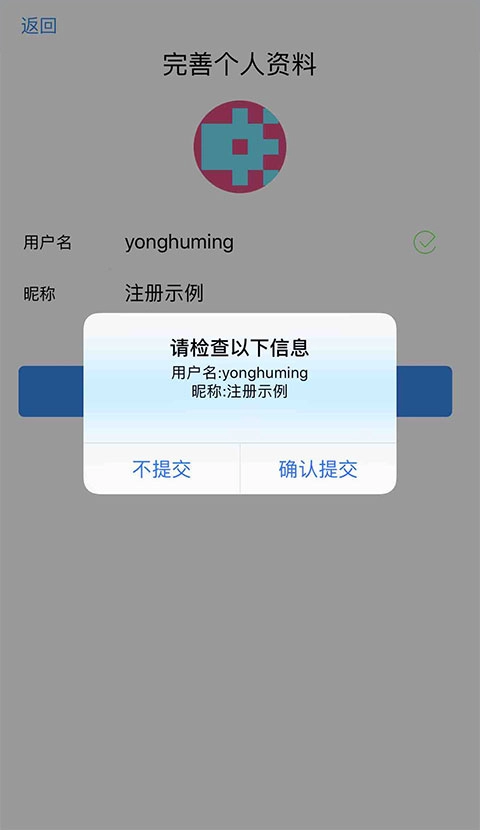 填写注册的用户名和昵称并确认提交。