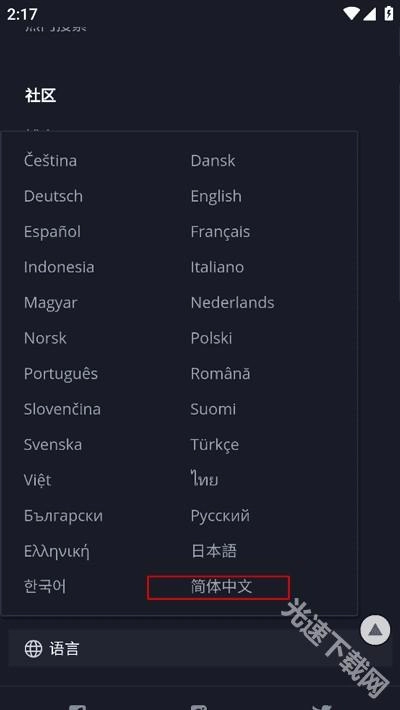 下滑到最后选择语言