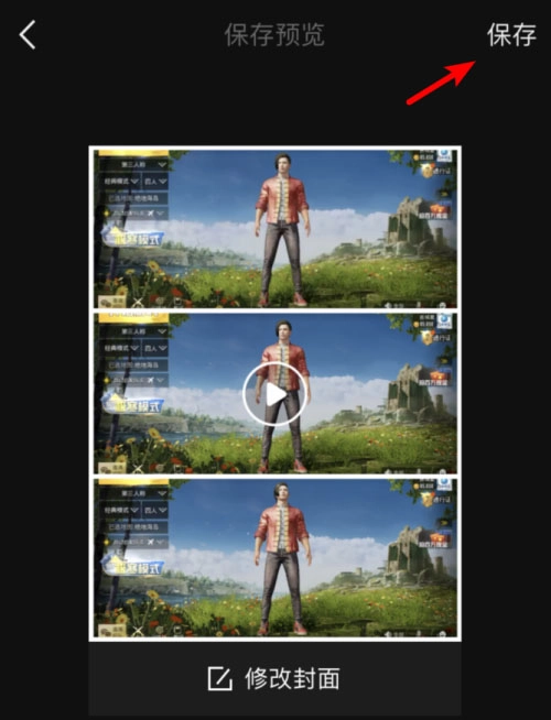点击下一步后,我们选择右上方的保存选项,就能把拼接好的视频保存到手机里了。