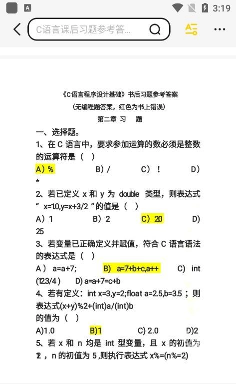 用户可以随机点进一个文档,里面会有很多的试题;