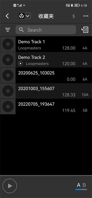 打开rekordbox手机版,点击导入乐曲选项,通过这个功能就能导入并播放手机本地存储的曲目。