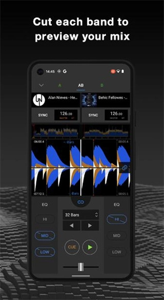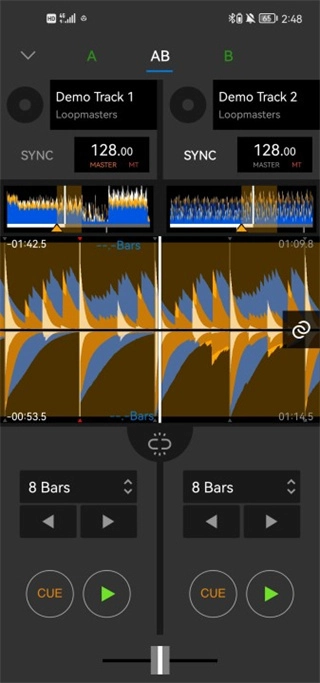 基础混音功能方面,这款软件配备了唱盘(decks)、采样器(samplers)、混音器(mixers)、效果器(effects)、循环(loops)等DJ演出必备的全套基础功能。借助Beat Sync功能,用户能轻松对齐两首歌曲的节奏(tempo)与节拍(beat),随后通过调节推子(faders),就能让两首歌曲实现自然流畅的混音衔接。