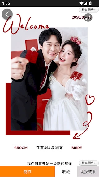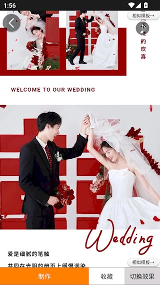 支持制作动态婚礼视频相册,能把珍贵的影像素材串联起来。提供多种转场特效和滤镜选择,配上背景音乐就能生成感人的短片。这些视频既可以嵌入请柬供预览,也适合在婚礼现场循环播放。