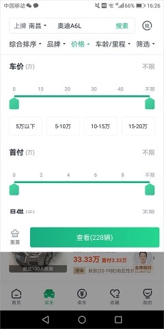 在新页面中,可以通过指定的价格区间筛选心仪车辆。