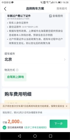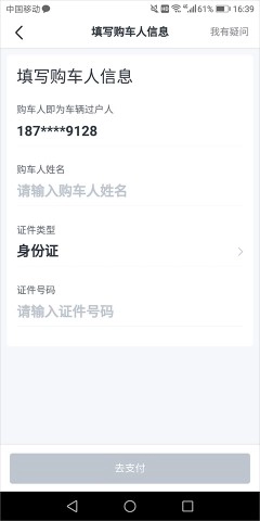 达成交易后点击【立即订购】,填写相关信息,确保上牌城市的证件信息准确无误,同时支持异地提车。