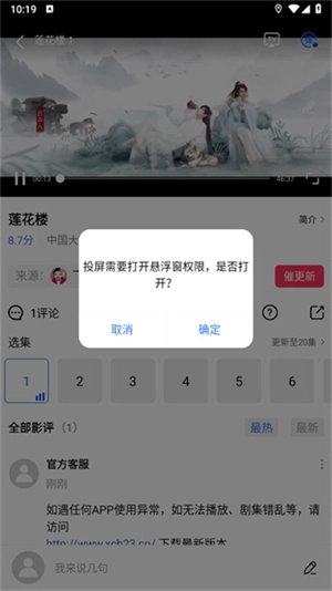 之后界面提示需要获取悬浮窗权限,请点击【确定】按钮来授予该权限。