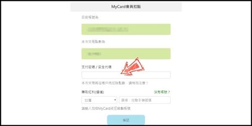 登录MyCard会员账号后,输入支付密码,手机信息为选填项,填写完成后点击确认按钮,就能完成此次交易。