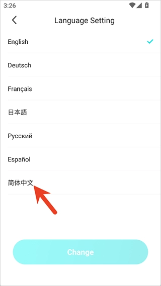 接着点击【简体中文】,之后再点击【change】按钮,就能把设置调整为中文了。