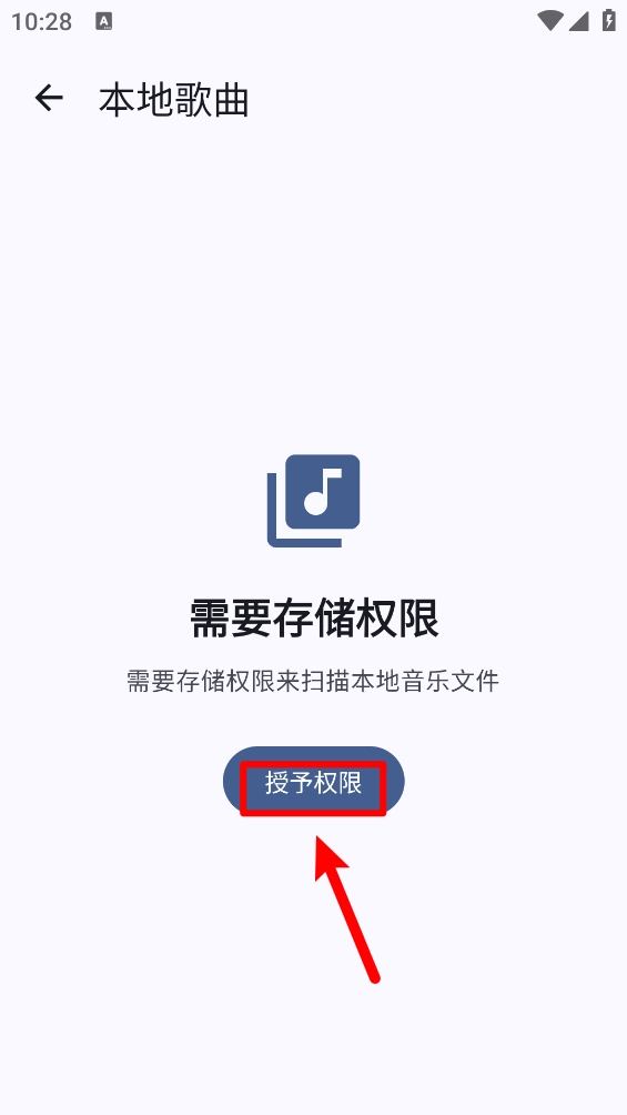 接下来点击“授予权限”,此操作需要获取存储权限,以便扫描本地的音乐文件。