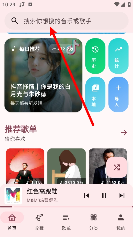 如图,输入音乐或歌手进行搜索喜欢的歌曲。