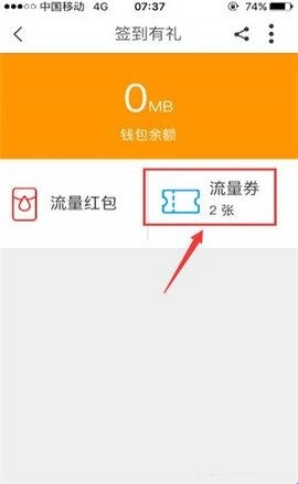 点击“我要兑换”按钮后,在跳转的新页面里能看到当前流量券的数量,接着点击“流量券”图标即可。