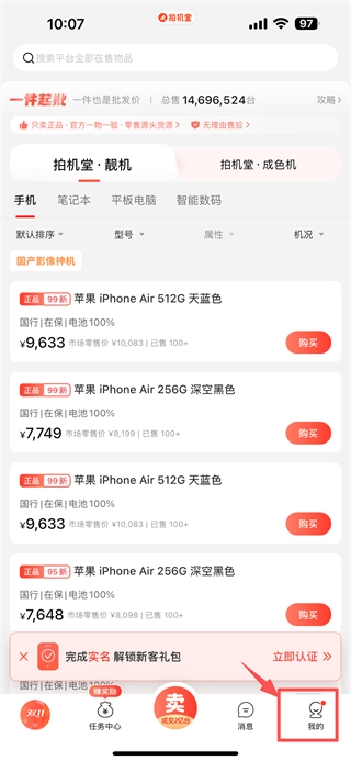 打开数码交易分类,点击底部的“我的”选项,进入个人中心页面。
