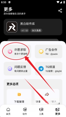 要是在里面没找到感兴趣的软件,可以点击【更多】提交【许愿求软】的请求,把你的软件需求反馈上来。