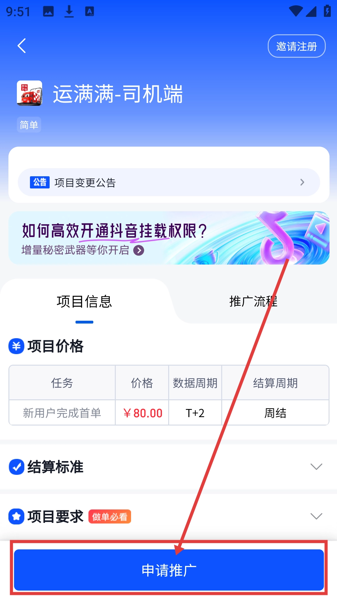 在项目详情页面,点击【申请推广】按钮,就能进入推广申请的流程,接下来就可以准备填写申请信息了。