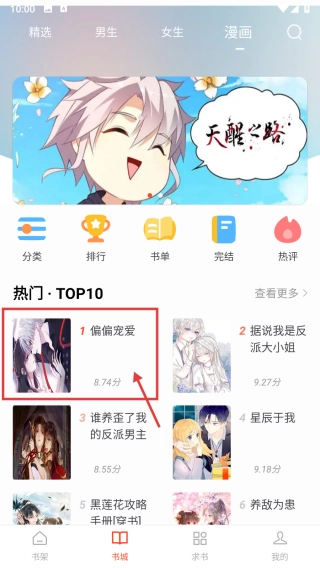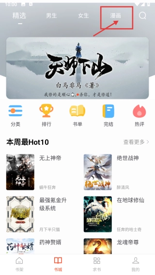 在书城页面,点击漫画分类标签,即可进入漫画分类列表页面。