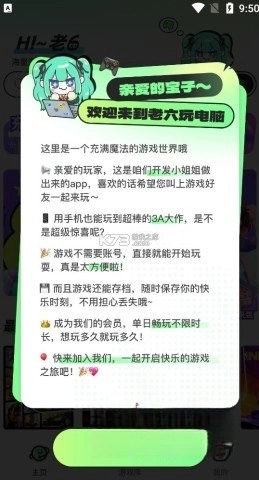 老六玩电脑这款软件确实是云游戏平台里的一匹黑马,集合了超多精彩好玩的游戏作品。不管你想玩什么类型的游戏,这里都有丰富的选择让你尽情探索。操作特别简单,你只要有一台设备和稳定的网络,就能流畅体验无缝衔接的游戏乐趣。老六玩电脑还为你准备了各类经典PC大作,让你足不出户就能享受到高品质的云游戏服务。